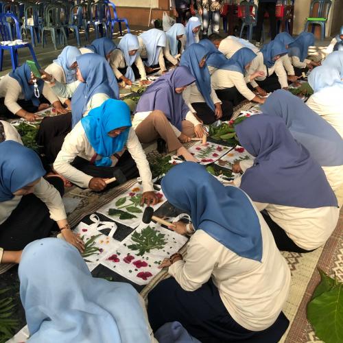 Antusiasme peserta terlihat dari semangat mereka dalam mencoba setiap proses, mulai dari memilih daun, menyusun motif, hingga menghasilkan karya yang unik dan personal. Kegiatan ini ditutup dengan sesi dokumentasi hasil karya masing-masing peserta.